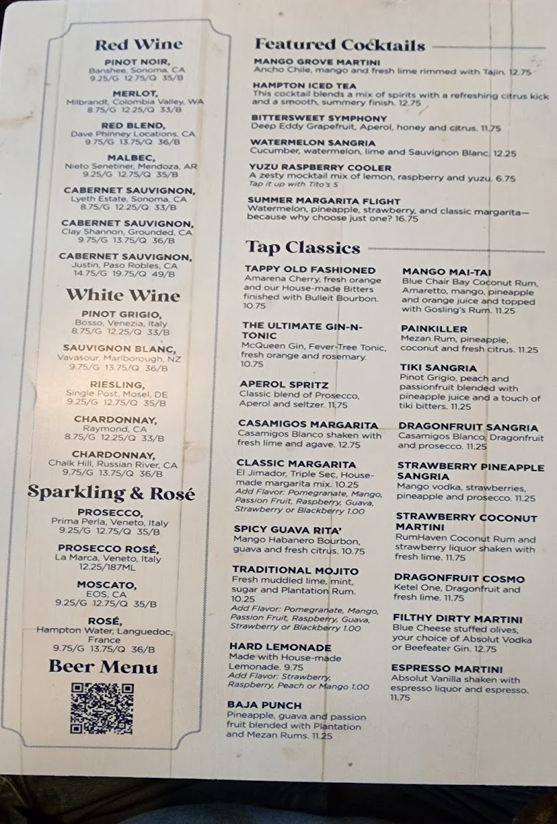 The Wood-N-Tap - Farmington Menu offers a delightful range of dishes that make every visit a memorable experience. Whether you're craving a hearty burger, a fresh salad, or a comforting bowl of soup, there's something for everyone. The menu highlights seasonal favorites, with an emphasis on quality, locally-sourced ingredients that bring out the best flavors. Signature dishes like their mouthwatering craft burgers and the crispy fish tacos are always a hit, but the sides, including the famous hand-cut fries, never disappoint. For those looking to enjoy a light bite or something to share, the small plates menu provides plenty of tasty options, perfect for pairing with a cold drink. Whatever you’re in the mood for, Wood-N-Tap - Farmington Menu is sure to satisfy your cravings with its variety and delicious options.